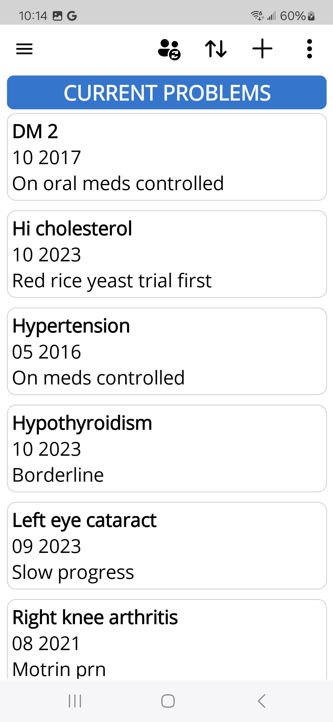 - Current Medical Problems