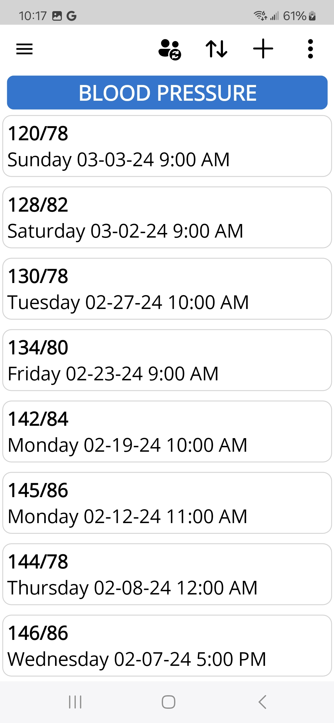 - Blood Pressure log