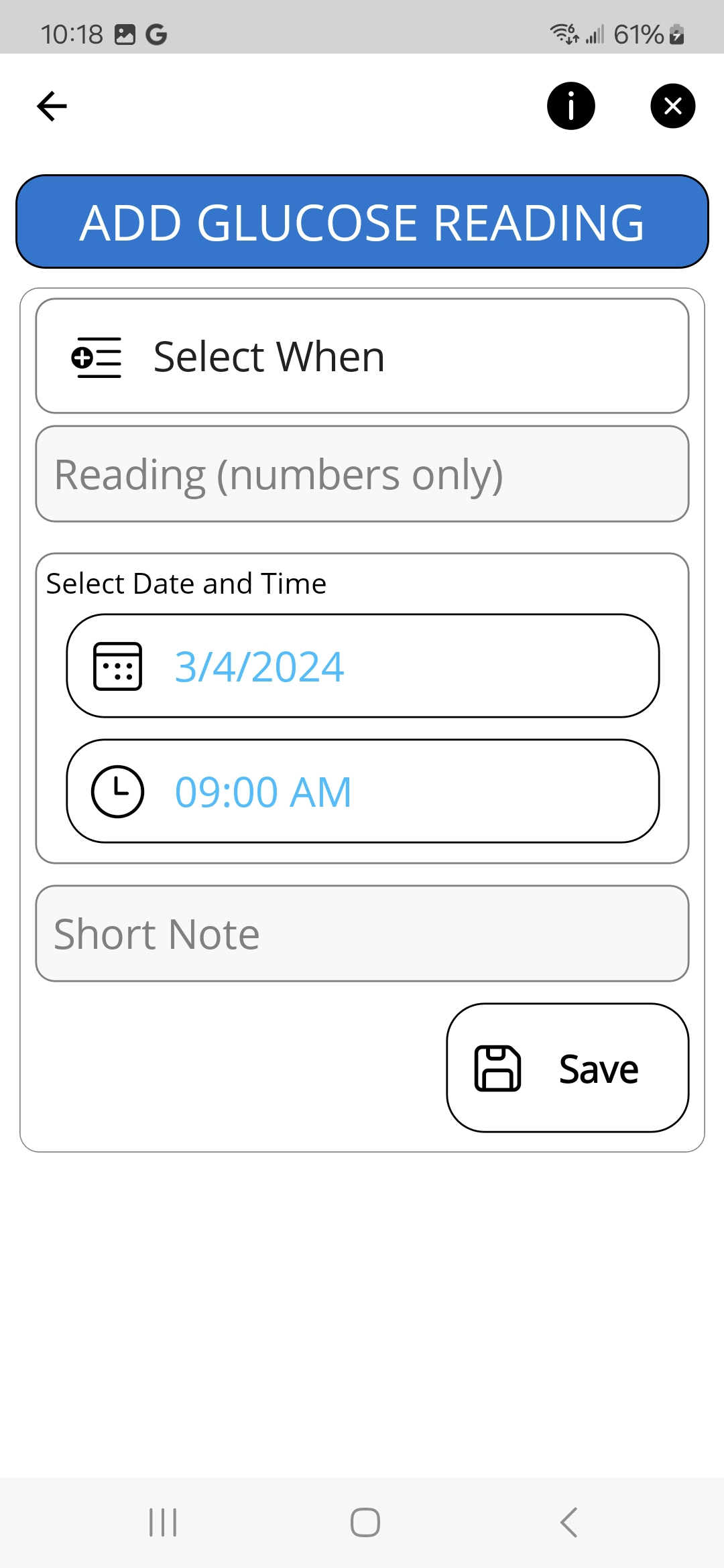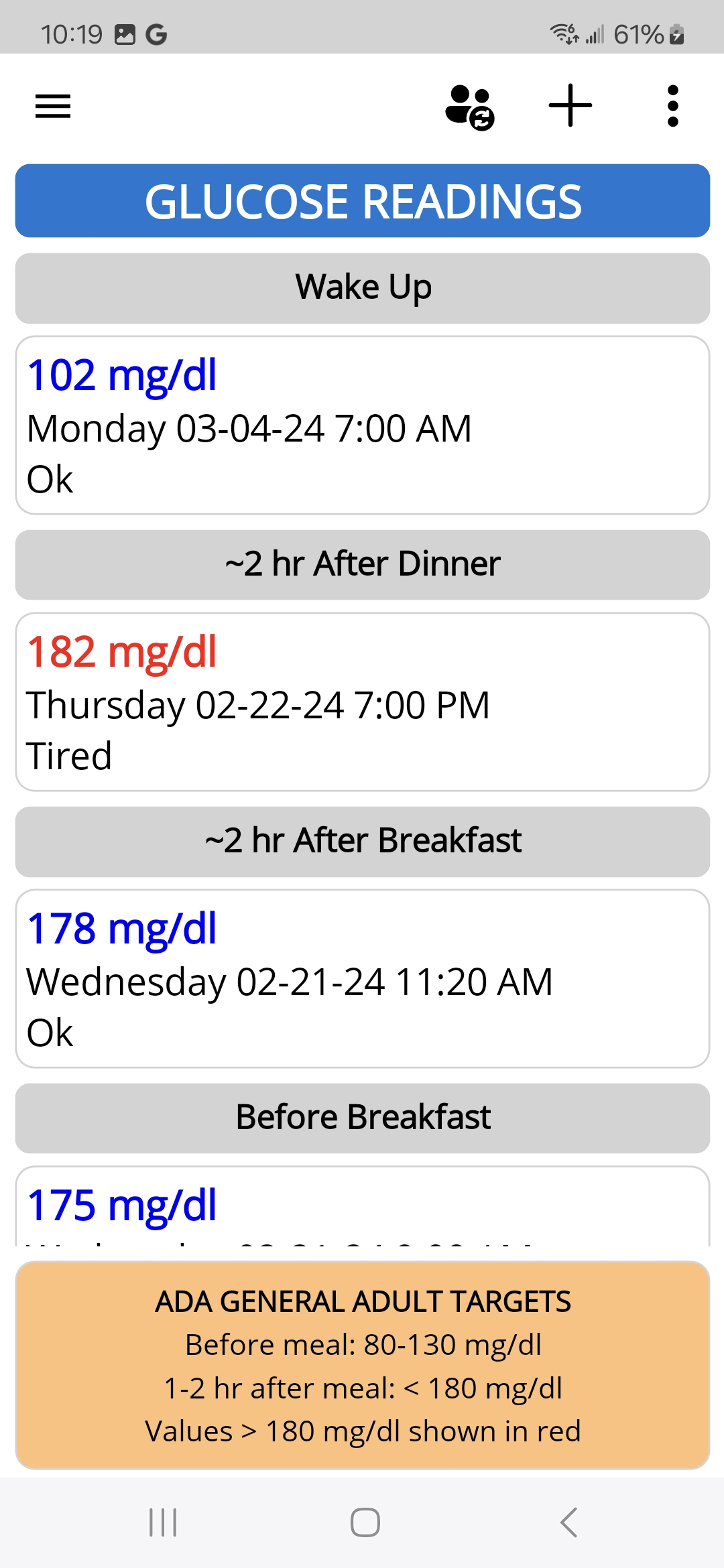 - Glucose Readings